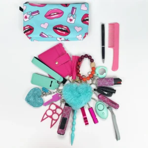 2025 new 20pcs Keychain Sets With Wristlet Bracelet Wallet, Mini Bag, Comb, Pen For Women And Girls